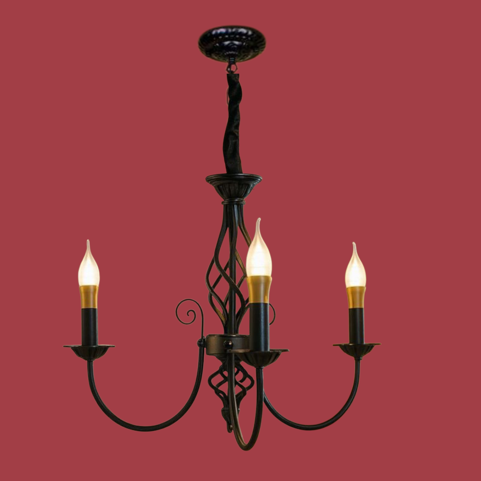 Designul rnegru al candelabrului si becurile tip lumanare conferă un aspect vintage placut